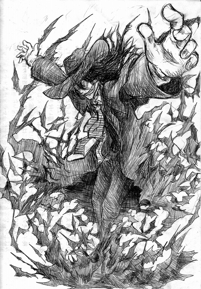 今年初めに読んだ漫画はヘルシングで、初めに描いた絵はアーカードさんでした。